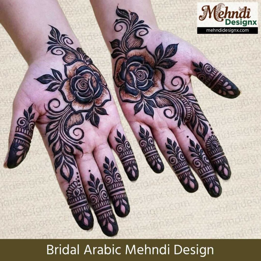 अरबी ब्राइडल मेहंदी की खूबसूरती इसके बोल्ड पैटर्न और खाली जगहों के संतुलन में छुपी होती है। हर स्ट्रोक में एलीगेंस और हर कर्ल में बारीकी का जादू है। यह डिज़ाइन उन दुल्हनों के लिए परफेक्ट है जो रॉयल और ग्लैमरस लुक का सपना देखती हैं।