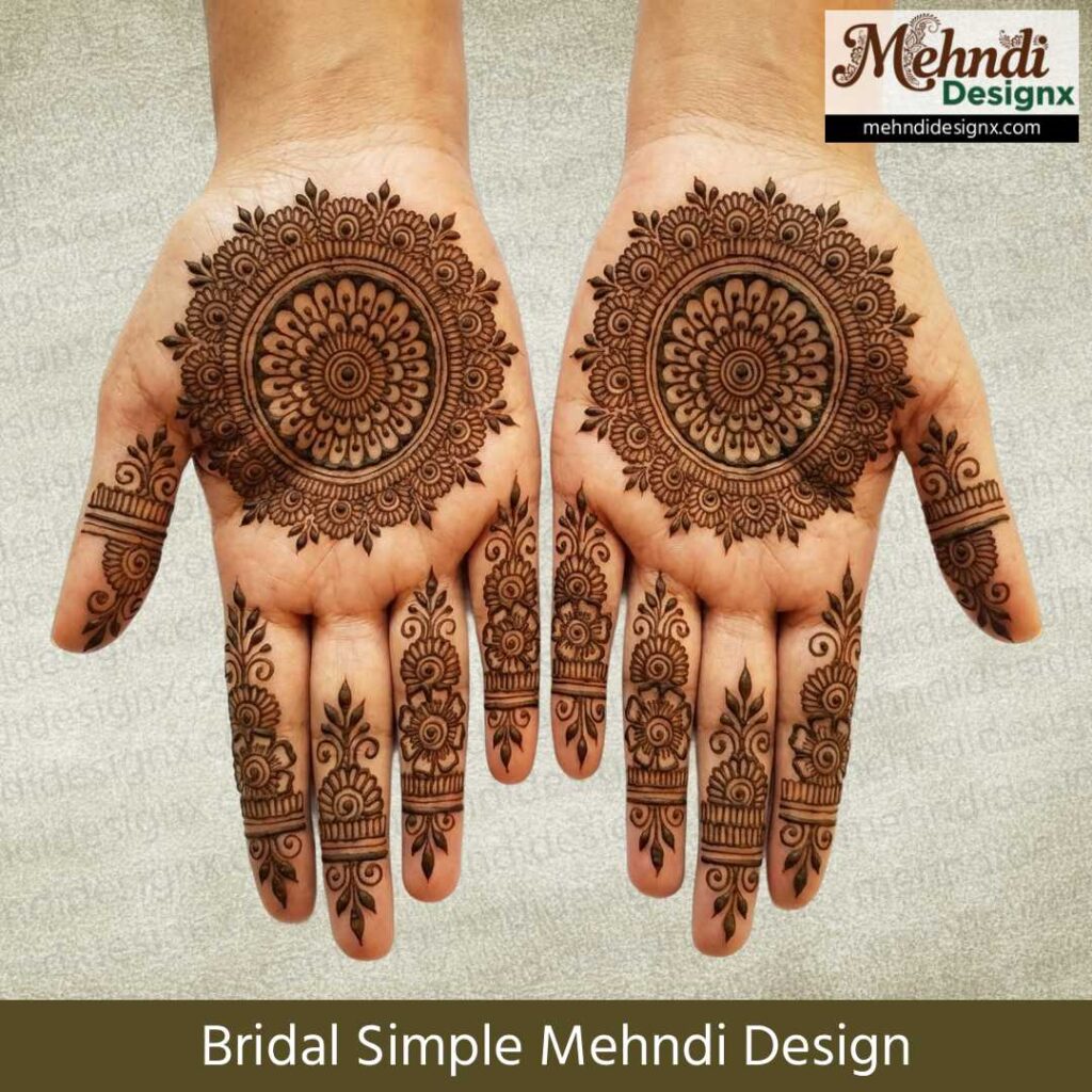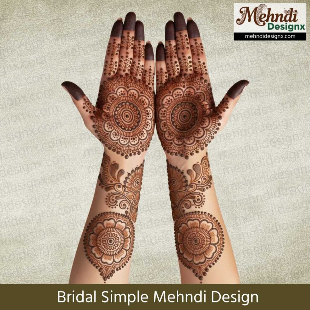 सिंपल ब्राइडल मेहंदी उन दुल्हनों के लिए परफेक्ट है जो मिनिमल लुक, साफ-सुथरे पैटर्न और कम समय में बन जाने वाली मेहंदी पसंद करती हैं। यह उन ब्राइड्स के लिए भी सही है जो बहुत भारी आर्टवर्क नहीं चाहतीं या शादी के दिन हल्का, एलिगेंट और ग्रेसफुल लुक रखना चाहती हैं। तस्वीरों में भी यह बेहद खिले हुए दिखती है।