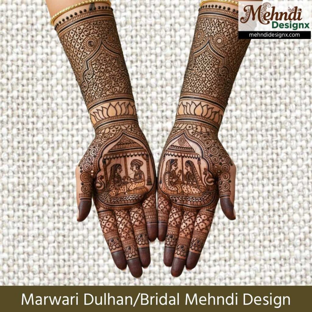 Marwari Mehndi Designs सिर्फ हाथों की शोभा नहीं बढ़ाते, बल्कि ये दुल्हन के दिल की धड़कनों से जुड़ी एक गहरी भावना बन जाते हैं। राजस्थान की रेत, हवेलियों की कला और पारंपरिक लोकगीतों की मधुरता -इन सबका सुंदर संगम Marwari मेहंदी में दिखाई देता है। इसकी बारीक रेखाएँ, जालीदार पैटर्न, दूल्हा-दुल्हन की आकृतियाँ और शगुन से भरे मोटिफ्स हर डिजाइन को एक कहानी में बदल देते हैं।