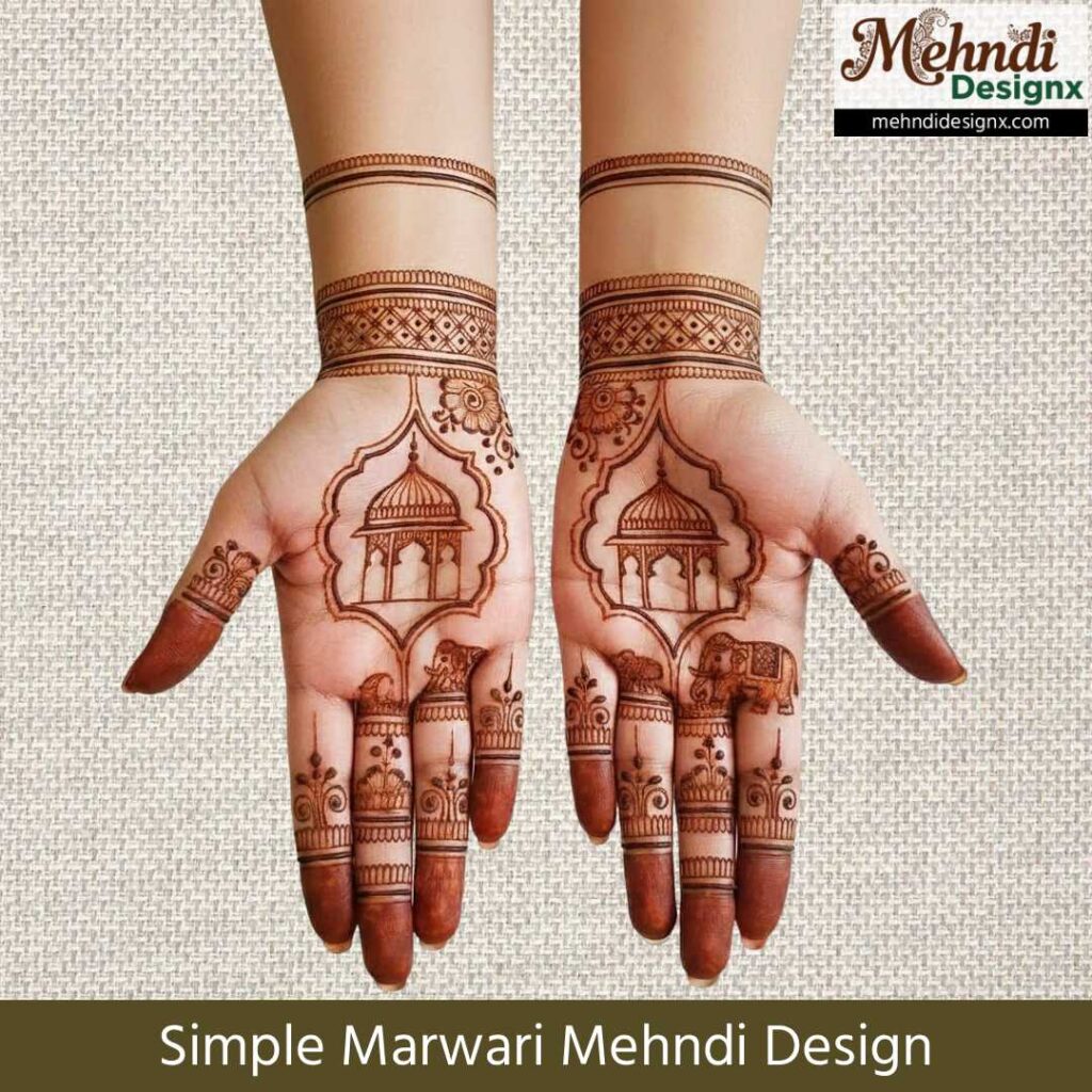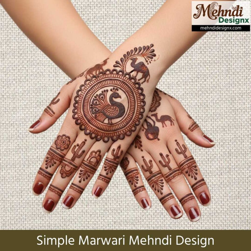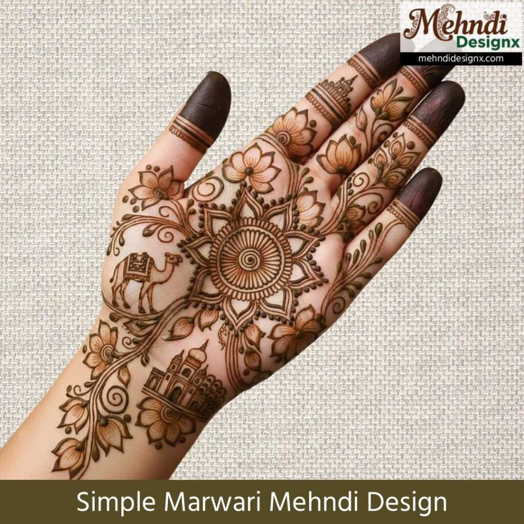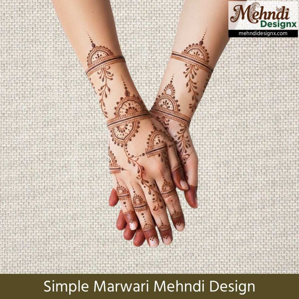 सीधी-सादी पर भावनाओं से भरी मेहंदी पसंद करने वालों के लिए ये सिंपल मरवाड़ी मेहंदी डिज़ाइन एकदम सही हैं। हल्के, प्यारे और साफ-सुथरे पैटर्न आपके हाथों को खूबसूरती का सुकूनभरा स्पर्श देते हैं।